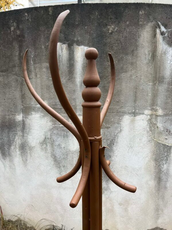 Kabykla tarpukario, lietuviška, pastatoma, medinė, Thonet stiliaus, tvirta, antikvarinė. Nulūži kabyklos dalis. Aukštis 170, pagrindo skersmuo 80 cm. Kaina 36