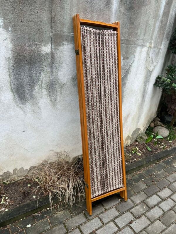 Širma medinė, audinio, vintažinė, suskleidžiama, lengva, prancūziška. Aukštis 170, plotis vienos dalies 42, keturių dalių 168 cm. Kaina 138