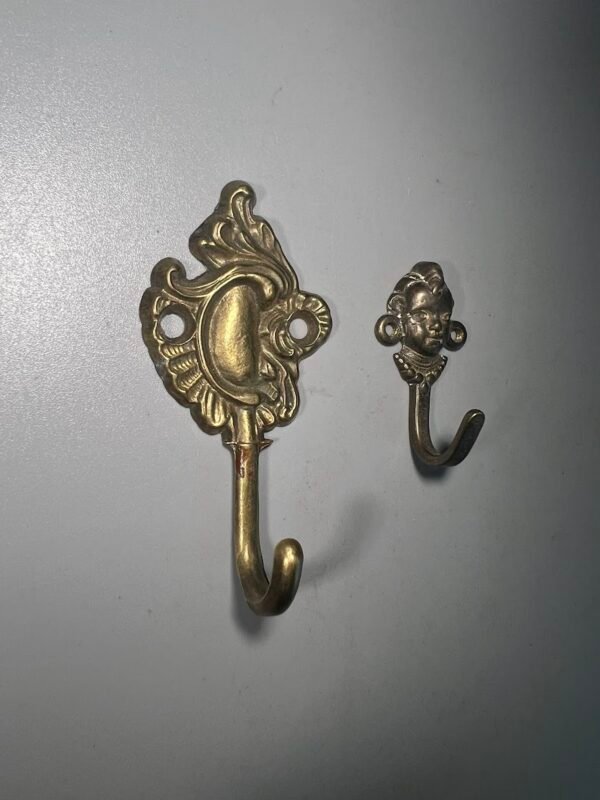 Kabykla, kabyklos, kabliukai rankšluosšiams, užuolaidoms antikvarinis, žalvarinis, prancūziškas. 2 vnt. Ilgis be sriegio 14, aukštis 8 cm. Kaina po 23