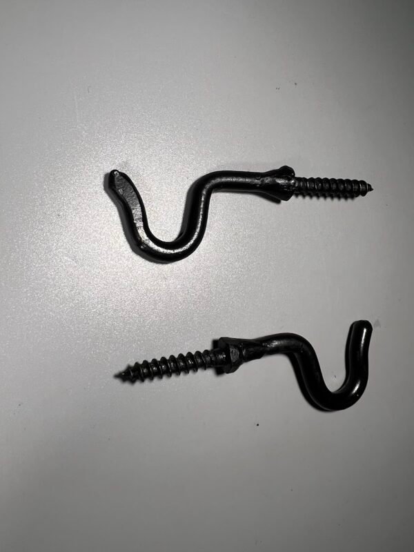 Kabykla, kabliukas kaltinis, įsukamas, tvirtas. 5 vnt. Viso ilgis 9 cm. Sriegio ilgis 3 cm. Kaina po 8