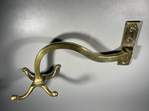 Laikiklis, kablys žalvarinis, tvirtas. Atstumas nuo sienos 20 cm. Pagrindo aukštis 19 cm. Plotis 3 cm. Kaina 28