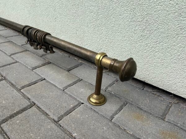 Karnizas užuolaidoms antikvarinis žalvarinis smetoniškas. 16 kabliukų užuolaidoms. Ilgis 140 cm. Kaina 83 už viską