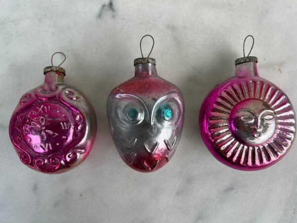 Naujametinių, kalėdinių žaisliukų kolekcija originalioje dėžėje, sovietinė, tarybinių laikų, С НОВЫМ ГОДОМ, Su Naujaisiais metais. Фабрика №2 Бауманского Райпромтреста. 1950-1960 m. Kaina 43 už viską.