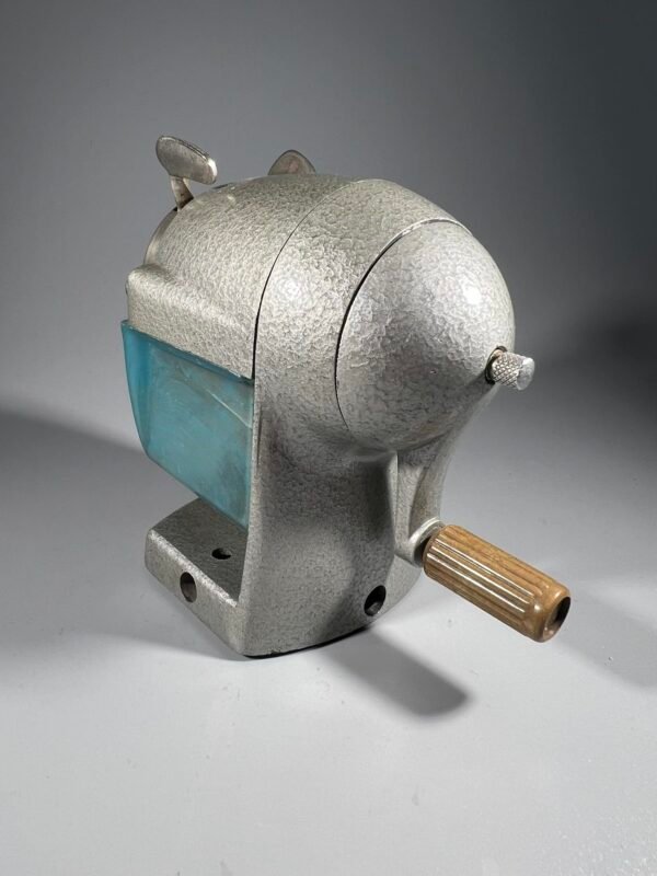 Drožtukas pieštukams mechaninis, ketaus, špižinis, i6skirtinio dizaino, sovietinis, tarybinių laikų. Veikiantis. Aukštis 12, ilgis 11, plotis 7 cm. Kaina 63