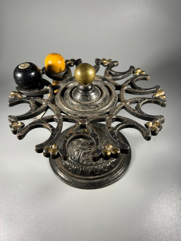 Šio stiliaus antspaudų laikiklis būtų buvęs kiekvieno komercinio stalo dalis. Tai Viktorijos laikų įmonės antspaudų laikiklis, pagamintas iš poliruoto ketaus su žalvarine rutuline rankena. Jame yra 10 stalo antspaudų, kurių viršutinė dalis sukasi, kad būtų lengviau pasiekti. Labai geros būklės.