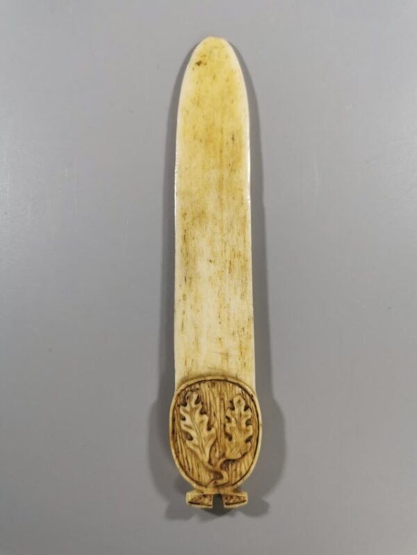 Peilis kaulinis, antikvarinis laiškams, popieriui atplėšti. Ilgis 15, plotis 3 cm. Kaina 26