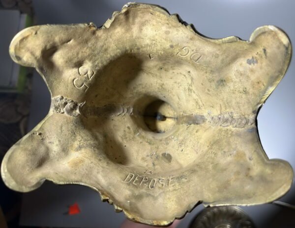 Žvakidė bronzinė, antikvarinė, penkių šakų, masyvi, 3,3 kg. svorio, rankų darbo, prancūziška. DEPOSE. Svoris 3,3 kg. Aukštis 45 cm., skersmuo 30 cm. Kaina 158