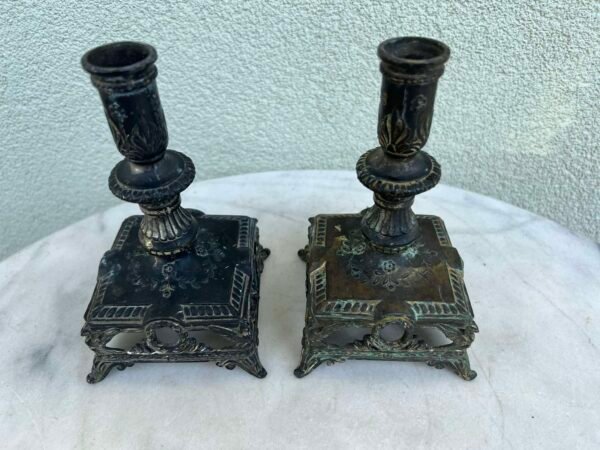 Žvakidė, žvakidės Ampyro stiliaus, antikvarinės, prancūziškos. 2 vnt. Aukštis 18, pagrindas: 10 x 10 cm. Kaina po 28