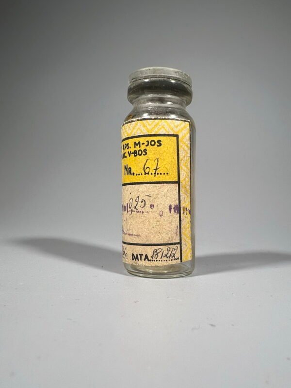 Buteliukas vaistinės, vaistų stiklinis lietuviškas, tarybinis, sovietinių laikų. Tuščias. Aukštis 5,5 cm. Kaina 8