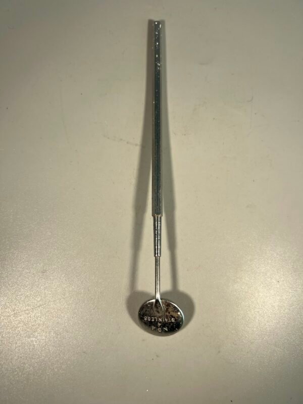 Stomatologo, odontologo veidrodėlis, vintažinis, nerūdijančio plieno. Būklė matosi nuotraukose. Kaina 6
