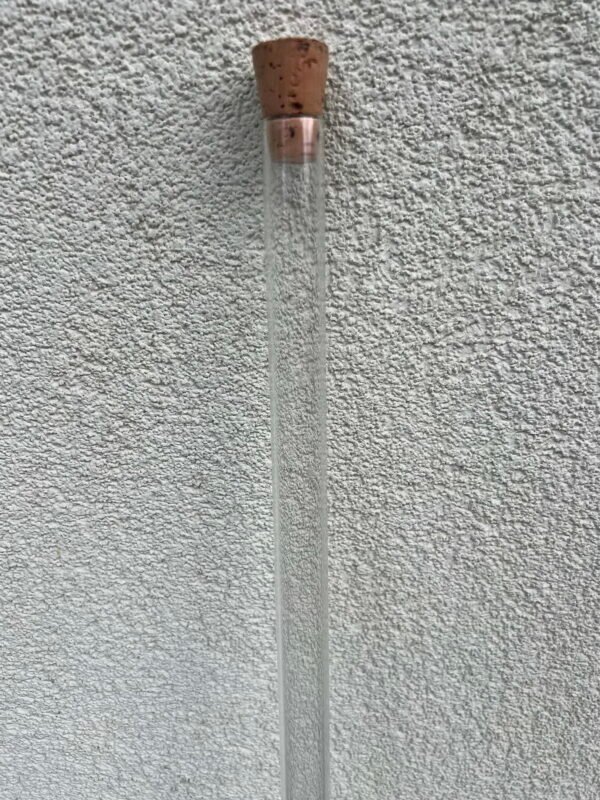 Menzūra stiklinė, ilgas mėgintuvėlis, stiklinė talpa, 67 cm. ilgio. Kaina 23