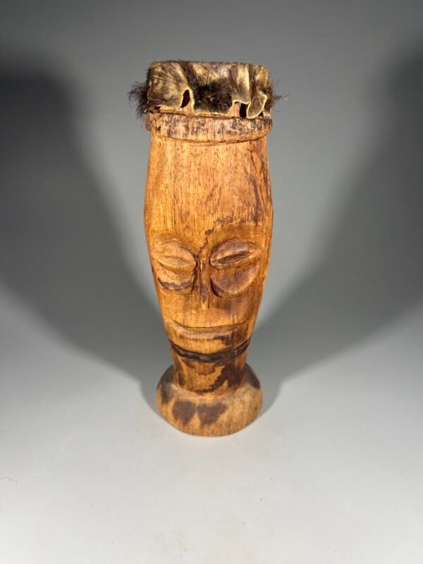 Būgnas, būgnelis afrikietiškas, medinis, trauktas gyvūno oda. Aukštis 20 cm. Kaina 23