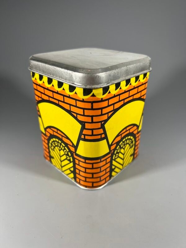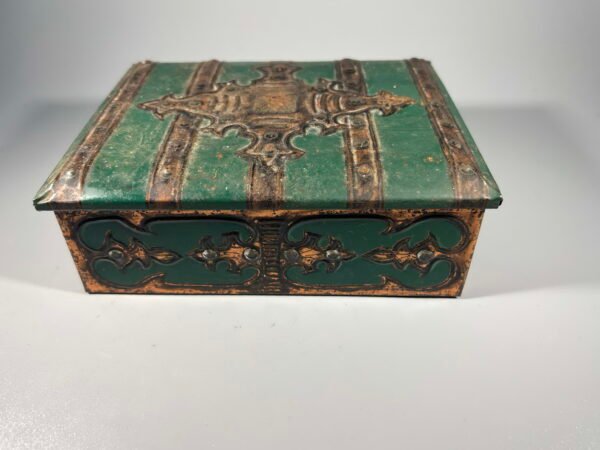 Dėžutė skardinė arbatai su arbata, antikvarinė, 1946 m. Dydis: 7 x 7 x 10 cm. Kaina 28