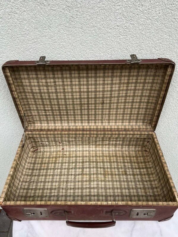 Lagaminas vintažinis, vokiškas rausvos spalvos. Dydis: 17 x 38 x 60 cm. Kaina 78