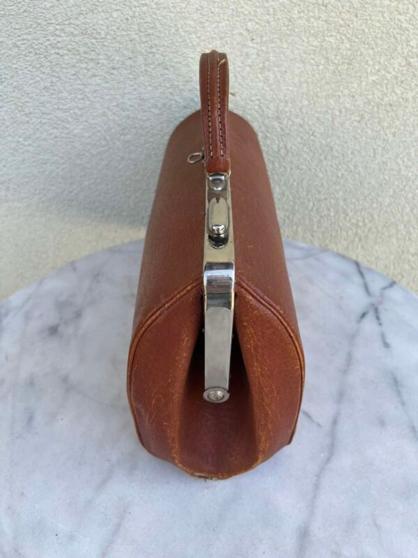 Lagaminas odinis daktaro, kelioninis, antikvarinis. Ilgis 47, plotis 20, aukštis 20 cm. Kaina 126