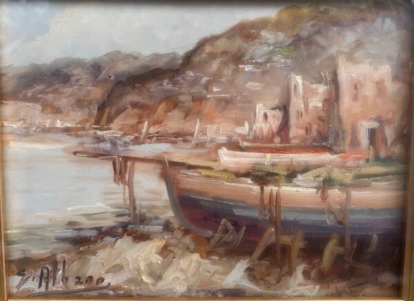 Paveikslas „Šiaurės peizažas“. Autorius Pranciškus Porutis (1924–2009), Lietuva. 1971 m. Kartono nugarinėje pusėje – įrašas raudonu pieštuku: „3785 / P.Porutis“. Kartonas, aliejus, 95,0 × 100,0 cm. Būklė: gera. Rėmas – medis, profiliavimas, tonavimas, 99,5 x 109,0 cm.