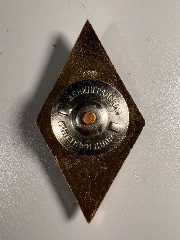 Aukštojo mokslo baigimo ženklelis, rombas sovietinis, tarybinių laikų. Kaina 13