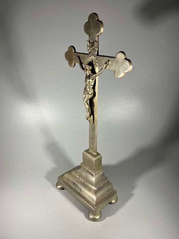 Nukryžiuotasis, kryžius pastatomas, antikvarinis. Metalas. Aukštis 36, plotis 16 cm. Kaina 53