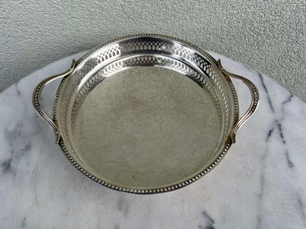 Padėklas su rankenomis apvalus. Scandia Present Sweden. Aukštis 4. skersmuo be rankenų 24 cm. Kaina 43
