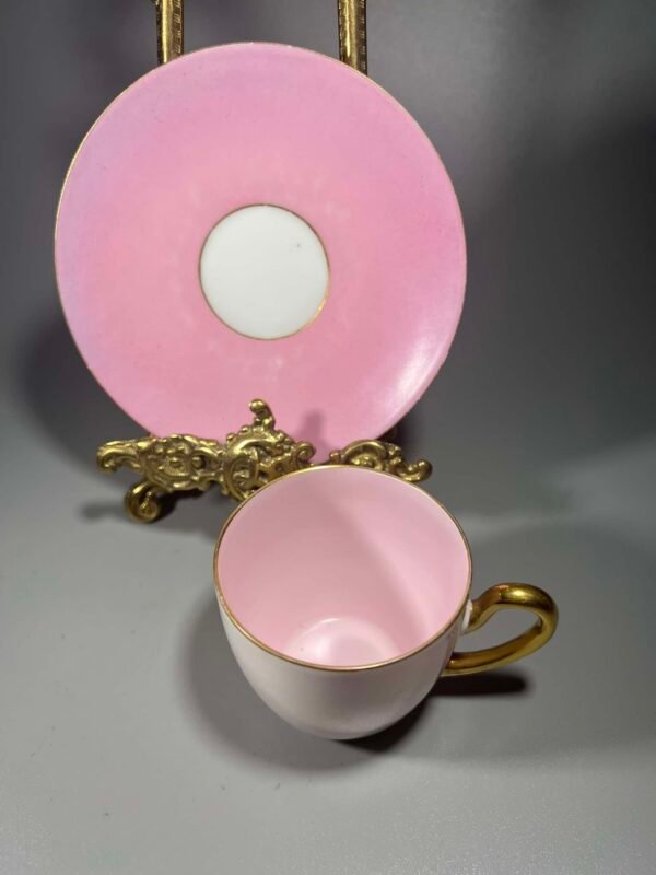 Antique cup and saucer with a manufacturer mark GD & C for G. Demartine, of Limoges, France on the underside base of both pieces. This mark was used by the company from after 1891 to the early 1900’s, so these pieces are antique and would be no „younger” than the early 20th century.