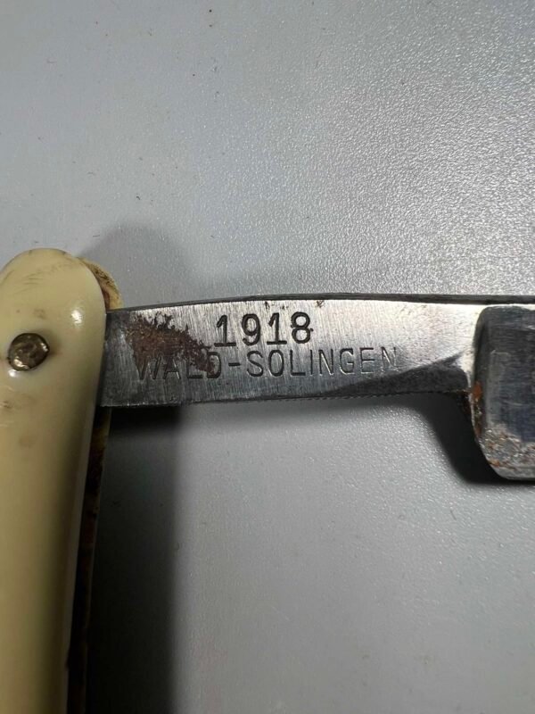 This antique collectible straight razor is a GONG RAZOR made in Germany in 1918 by WALD SOLINGEN.