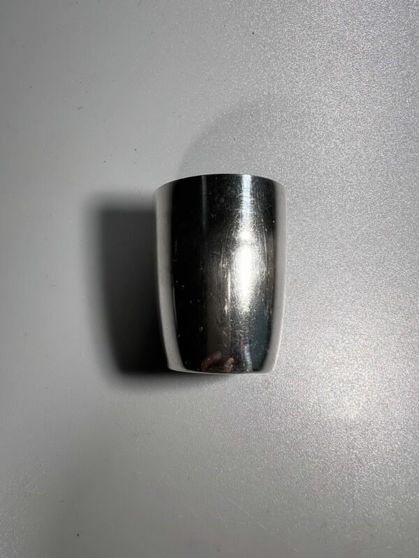 Taurelė, stikliukas sidabrinė auksuotu vidum. Praba 800. Svoris 19 gr. Aukštis 4,5 cm. pagrindo skersmuo 2,5, viršaus skersmuo 3,5 cm. Kaina 46