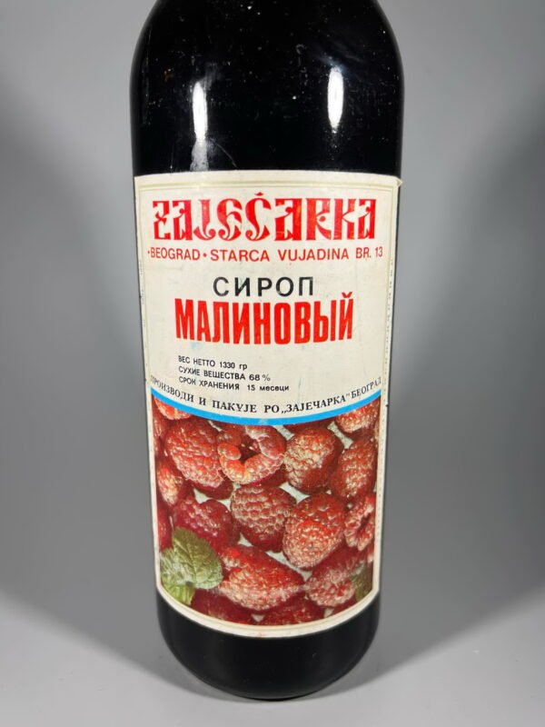 Butelis aviečių sirupo tarybinių laikų. 0,6 l. 1984 m. Nenaudotas. Aukštis 23 cm. Kaina 18