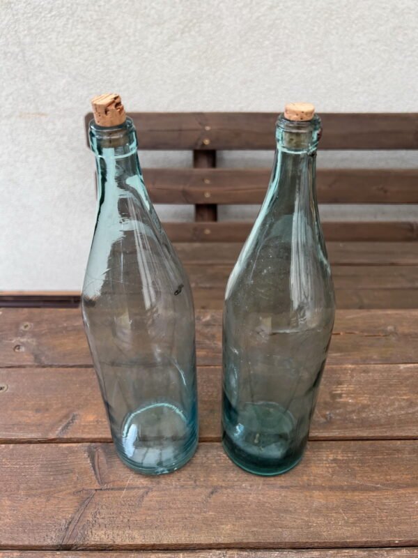 Buteliai antikvariniai samagonui ar pan. šviesaus stiklo. Aukštis 33 cm., skersmuo 9 cm. 2 vnt. Kaina po 26