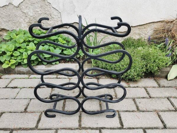 Stovas vyno buteliams ar pan. ketaus, špižinė. Aukštis 47, ilgis 45, plotis 13 cm. Kaina 42