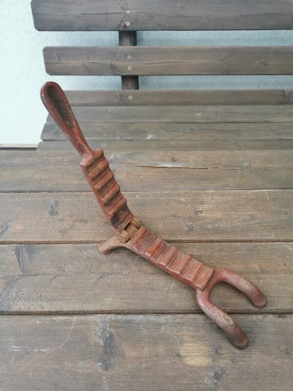 Antikvarinis medicininių butelių kamščių užspaudėjas. Ketaus, špižinis. Ilgis 25, plotis 10, aukstis 8 cm. Kaina 48