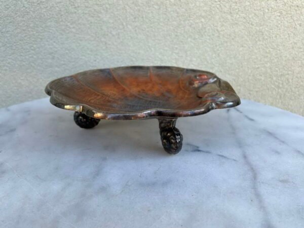 Padėklas , kriauklė antikvarinis, masyvus. Svoris 1,1 kg. Aukštis 7, skersmuo 24 cm. Kaina 53