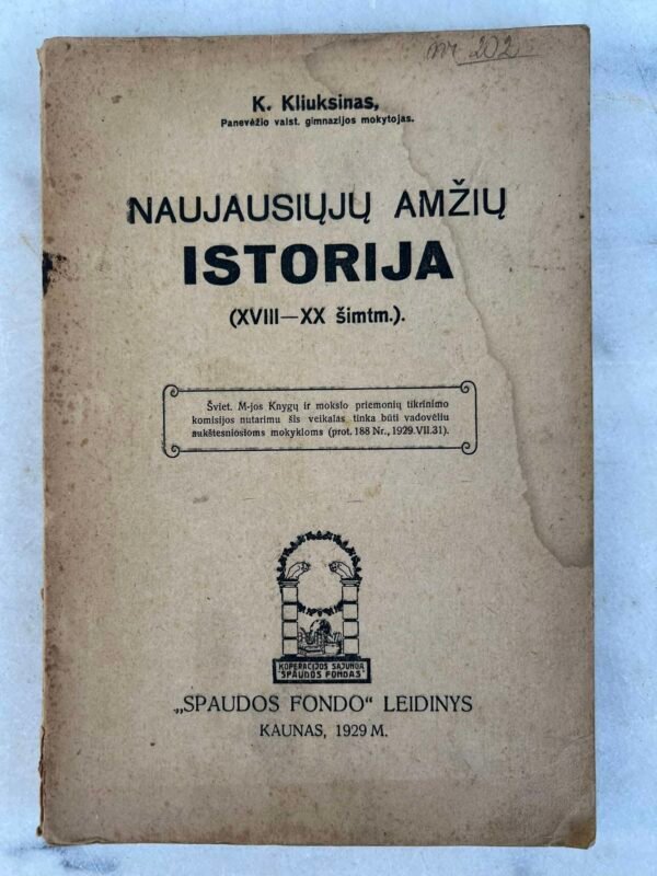 Knyga Naujausiųjų amžių istorija (XVIII-XXa.). 1929 m. 189 psl. Kaina 13