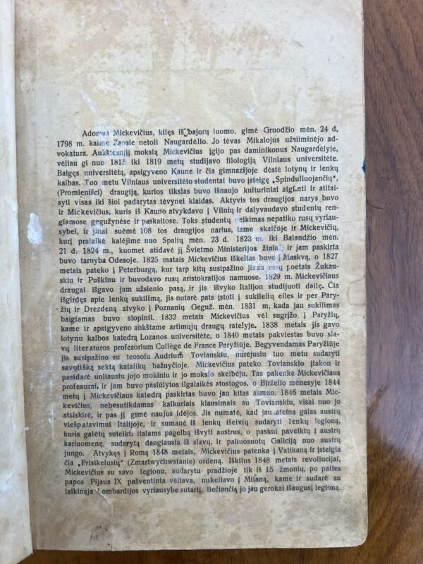 Knyga Ponas Tadas. Adomas Mickevičius. 1924 m. 330 psl. Kieti viršeliai. Kaina 12