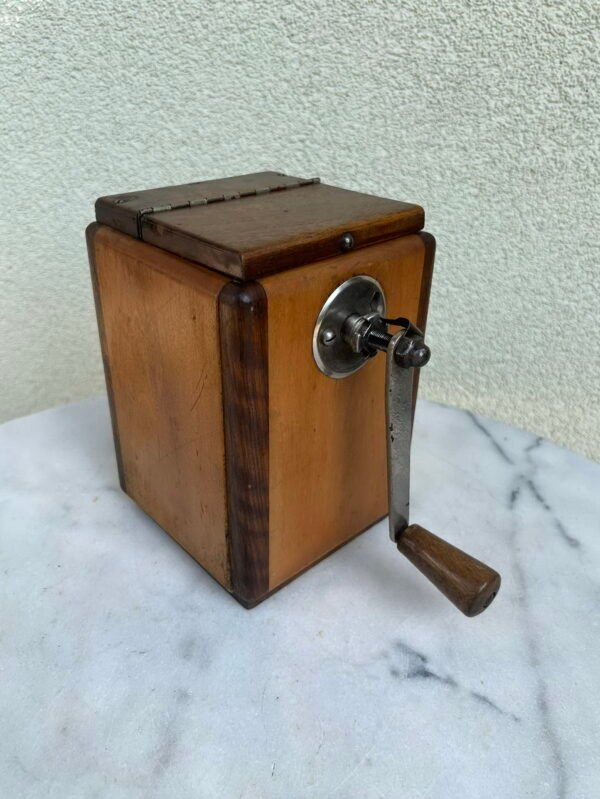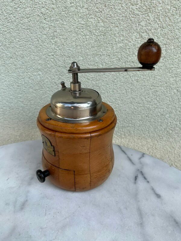 Pagaminta 40-aisiais ir 50-ųjų pradžioje, o mediena surinkta gražiu šaškių lentos raštu. Šių laikų apvalios kavos malūnėliai yra labai reti.