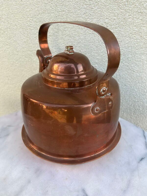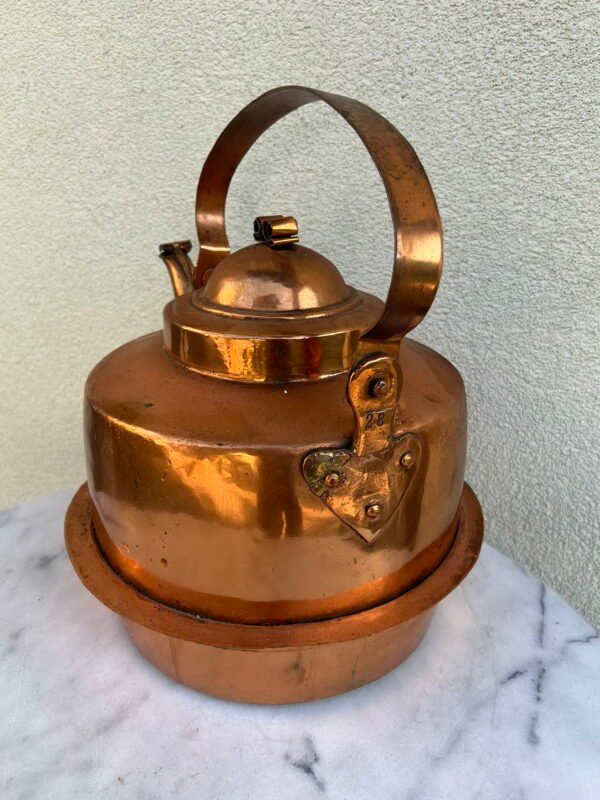 Arbatinukas varinis, antikvarinis, kaltinis, didelis. Talpa 5 l. Tinkamas naudojimui. Aukštis su rankena 26 cm., skersmuo 22 cm. Kaina 93