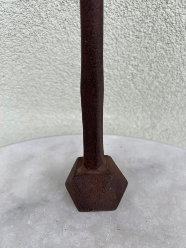 Kablys trišakis, inkaras kaltinis, antikvarinis. Aukštis 15, aukštis su žiedu 20, skersmuo 17 cm. Kaina 28