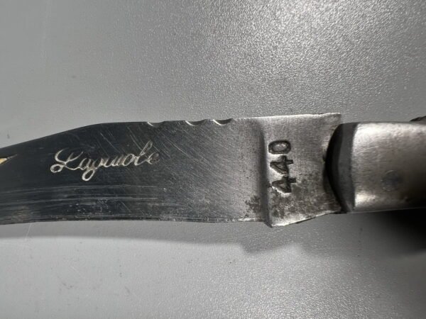 Peilis Laguiole kišeninis, atlenkiamas, medine rankena, antikvarinis, prancūziškas. Rankenos ilgis 12, viso ilgis 22 cm. Kaina 38