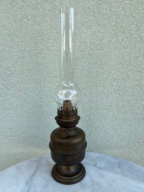 Žibalinė lempa antikvarinė, prancūziška. Aukštis 57 cm. Kaina 78