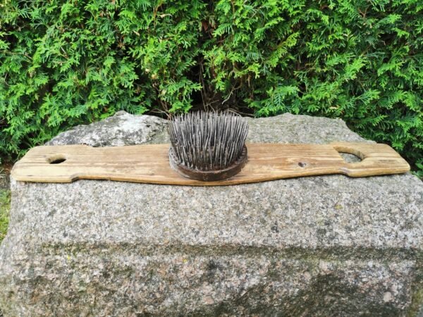 Linų šukos, šukuotis antikvarinis, medine rankena su išraižytais metais 1860 m. Kaina 88
