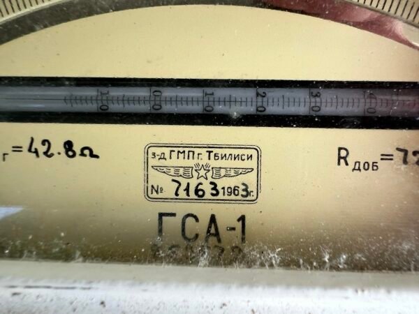 Galvanometras senovinis, 1974 m. tarybinis, sovietinių laikų su keičiamomis skalėmis. Aukštis 20, plotis 26 cm. Būklė labai gera. Netikrintas. Kaina 83