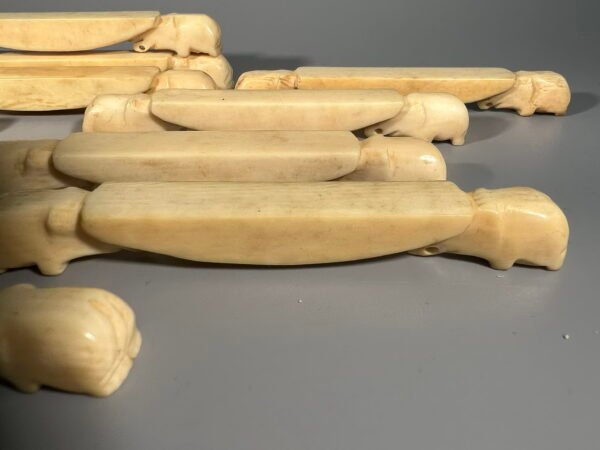 Stalo įrankių atramos antikvarinės pagamintos iš dramblio kaulo, peilių, šakučių laikikliai serviravimui. 12 vnt. Ilgis 10,5 cm. Kaina 187