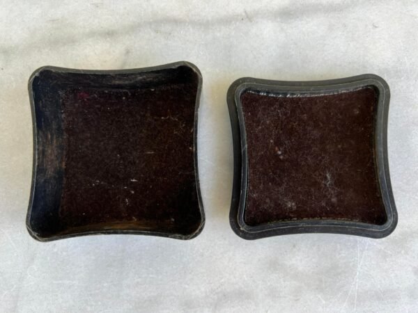 Lėkštės metalinės, nerūdijančio plieno, neržaveikos sovietinės, tarybinių laikų, keturkampės. Ilgis 30, plotis 13,5, aukštis 1 cm. Pirmųjų 33 vnt. Antrųjų 14 vnt. Trečiųjų 2 vnt. Kaina po 13