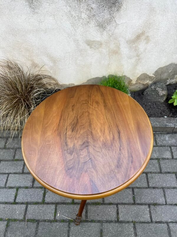 Staliukas, stovelis ovalus. elegantiškas, ampyro stiliaus. Vienoje pusėje pažeistas lukštas. Aukštis 62, dydis: 36 x 56 cm. Kaina 87