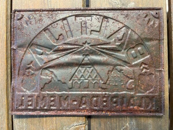 Iškaba lentelė emaliuota, storos skardos, reljefiniu užrašu tarybinių laikų: LTSR JURBARKO MIŠKO PRSAMONĖS ŪKIS VELIUONOS GIRININKIJA. Dydis: 35 x 50 cm. Kaina 157