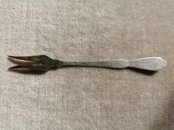 Šakutė sidabrinė, praba 84. Carinė Rusija. Svoris 70 g. Ilgis 21 cm. Kaina 198
