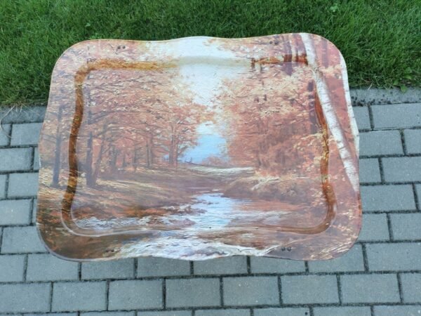 Padėklas metalinis su rankenėlėmis, puošnus, vintažinis. Dydis: 4 x 26 x 40 cm. Kaina 48