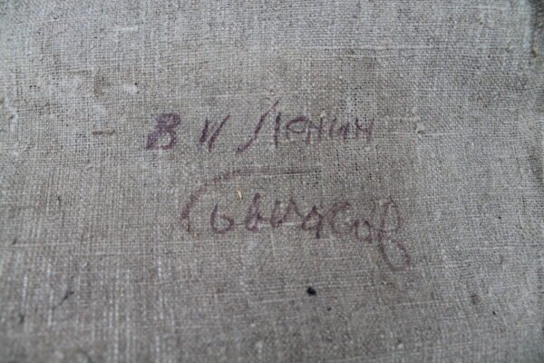 Portretas tapytas Lenin. Aliejus, drobė. Dydis: 70 x 85 cm. Autoriaus pavardė, parašas kitoje pusėje. Kaina 138