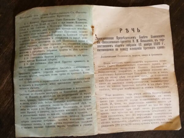 Kauno Šv. Nikolajaus Stebukladario cerkvė – vienintelė sentikių cerkvė Kaune. 1906 m. cerkvės atidarymo kalba 1906 m. 35 psl. Kaina 87