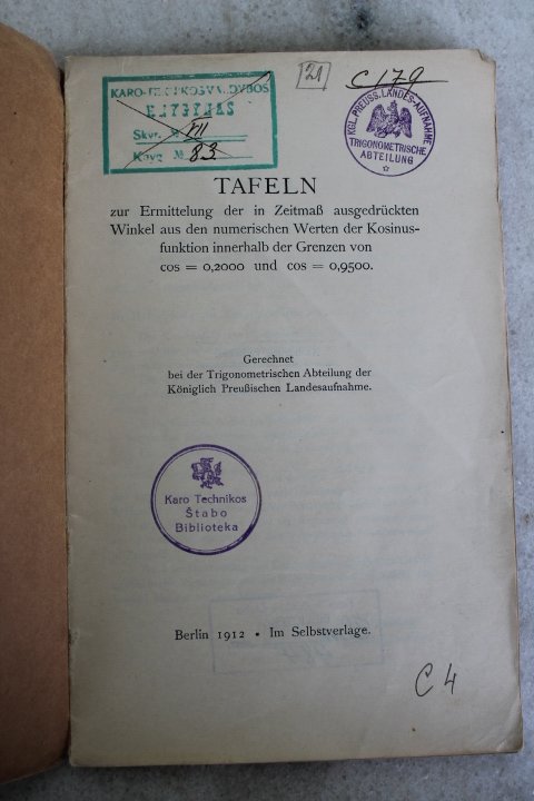 Matavimo lenteliu knyga. 1912 m. Stampas: Karo stabo technikos biblioteka. Kaina 8 Eur.